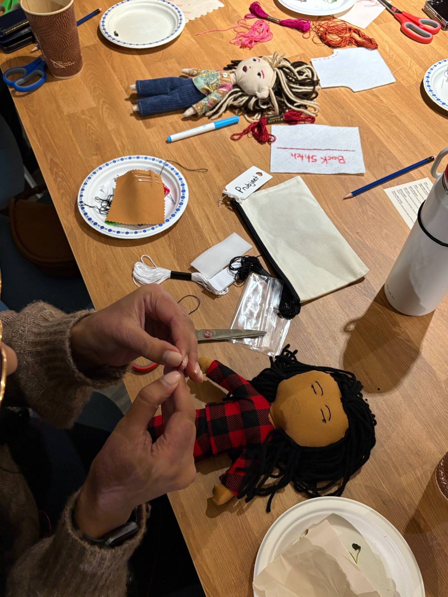 Cozy, creative workshops with guided sewing instruction to customize your own Mini-Me Doll.